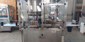 Riempitrice monoblocchino per vino GUALTIERO CALO’ così composto: 1) riempimento a 10 valvole a gravità 2) livellatore con iniezione di azoto 3) tappatore sughero raso 4) nastro di trasporto motorizzato 5) piazzola di accumulo Inoltre …